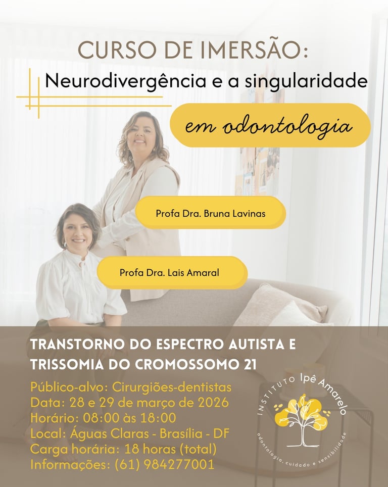 Serão 2 dias intensivos, teóricos e demonstrativos, com foco no atendimento odontológico de pessoas neurodivergentes, incluindo Autismo e Trissomia do Cromossomo 21.
